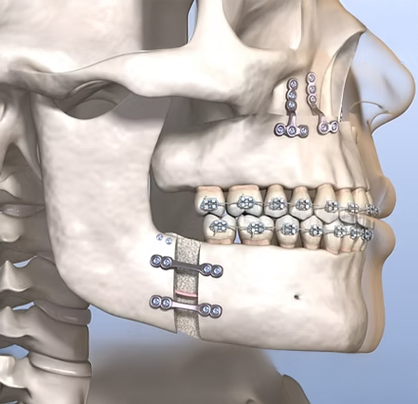 Cerrahınız herhangi bir yanlış hizalamayı düzeltmek için çene kemiklerinizi yeniden konumlandıracaktır. Kemikler vidalar veya plakalar kullanılarak yerine sabitlenebilir.